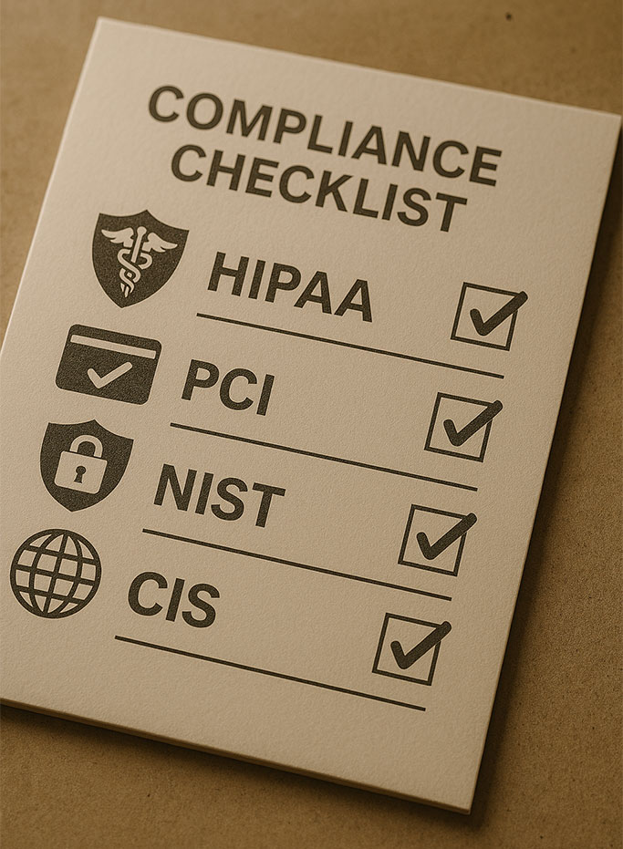 Ensures your business meets industry regulations (HIPAA, PCI-DSS, CMMC, NIST) and undergoes regular security audits to identify vulnerabilities.
